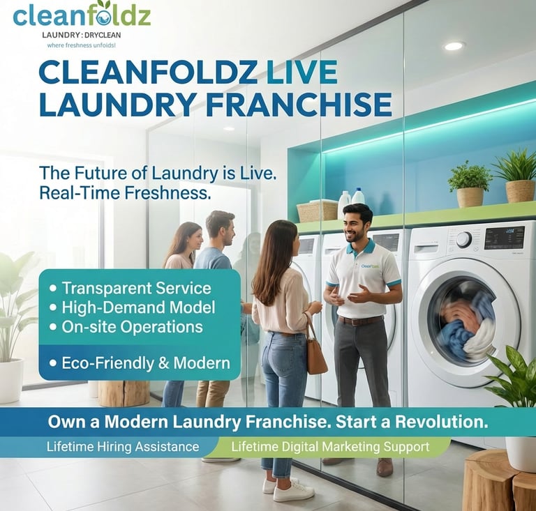 Cleanfoldz Laundry offers a scalable entry into the booming laundry sector. Own territorial rights for states or cities, backed by a proven business models with low investment and strong ROI potential.